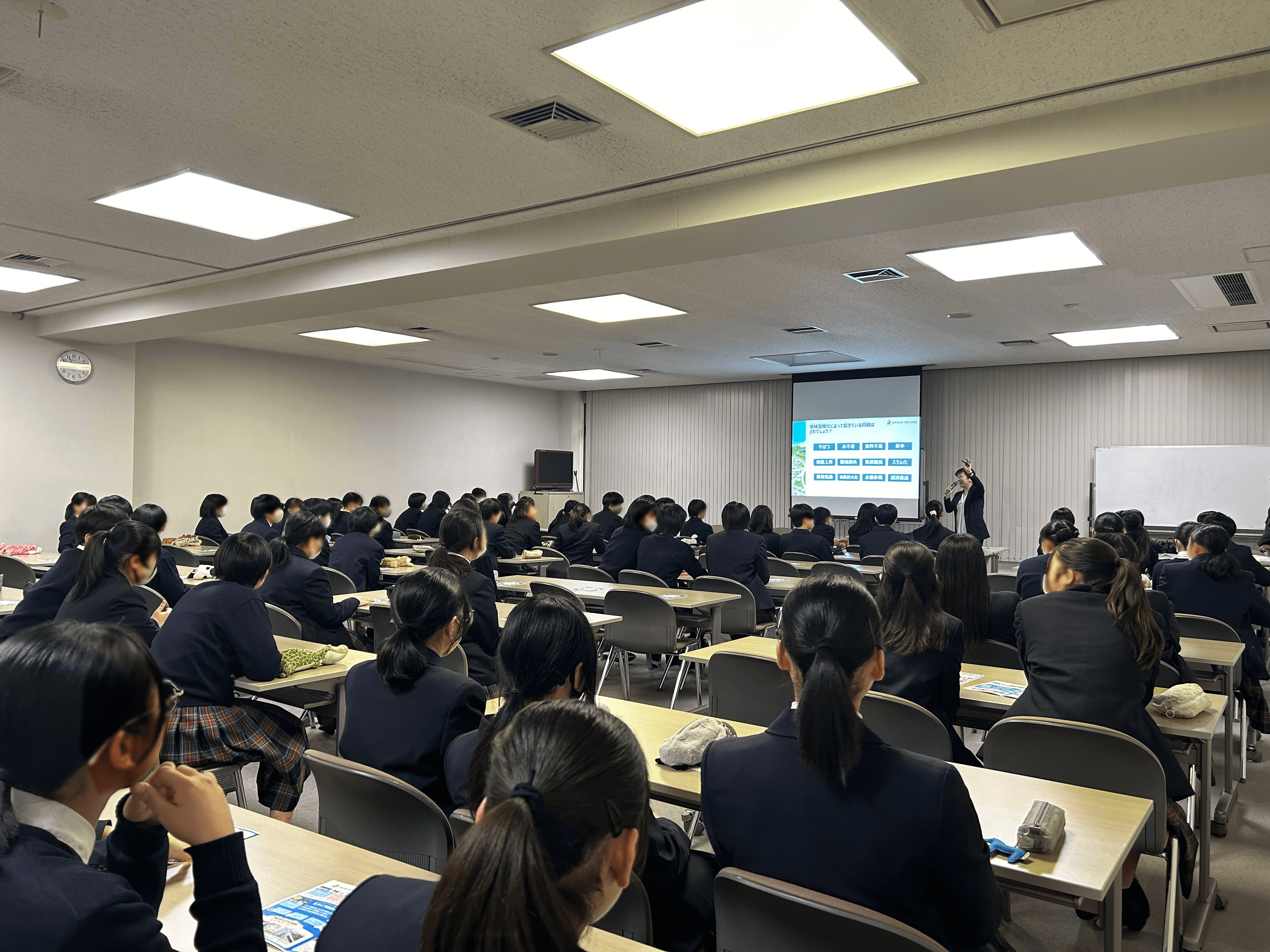 城南学園中学校は80年以上の歴史を持つ女子校です。今回の授業は1~3年生の生徒約80名を対象に実施しました。