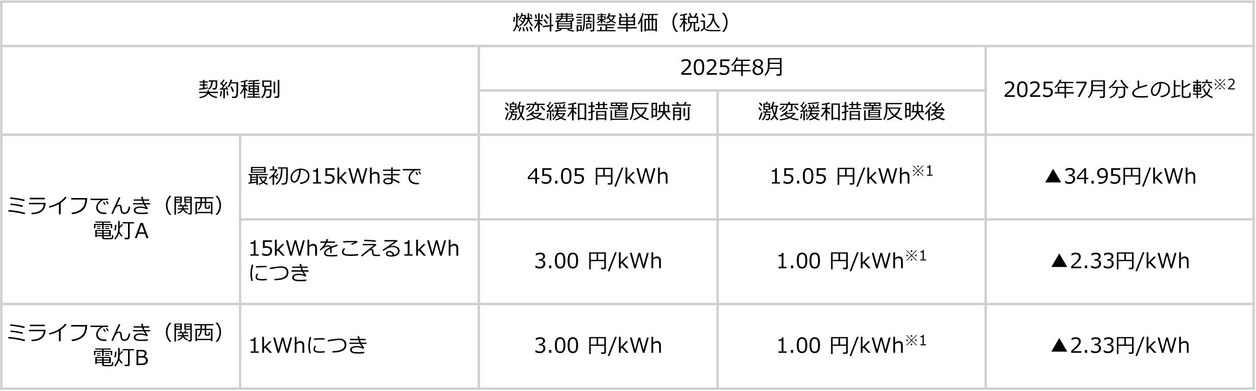 いつも「ミライフでんき」をご利用いただき、誠にありがとうございます。 「ミライフでんき」の電気料金に対する燃料費調整単価を下記の通りお知らせいたします。