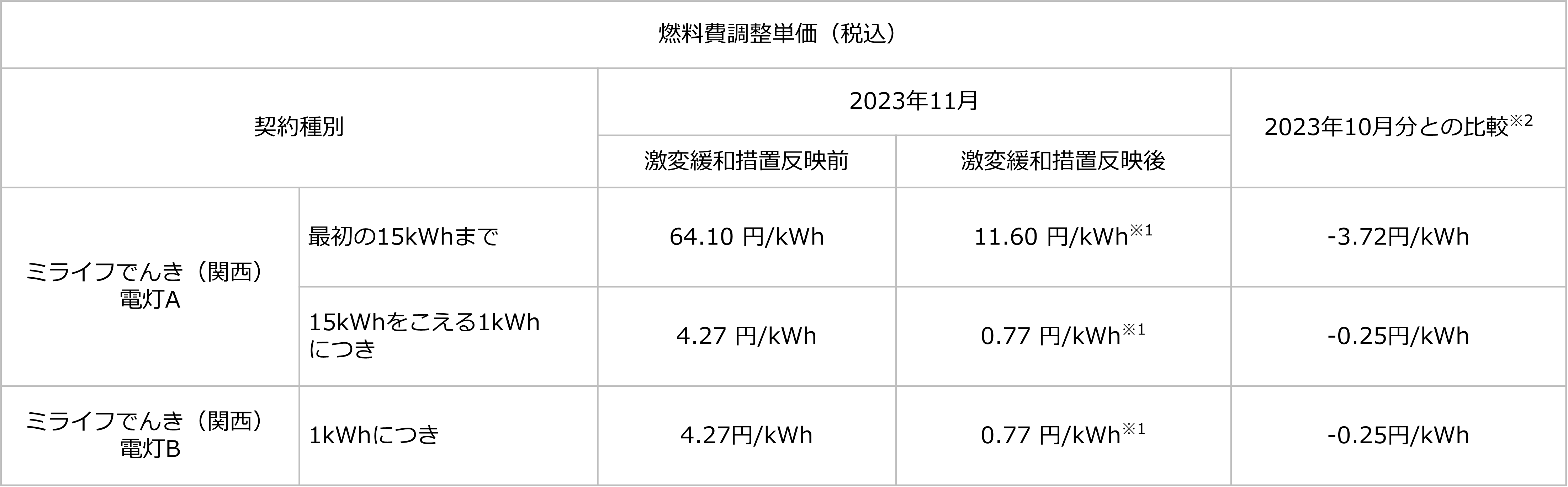 いつも「ミライフでんき」をご利用いただき、誠にありがとうございます。 「ミライフでんき」の電気料金に対する燃料費調整単価を下記の通りお知らせいたします。
