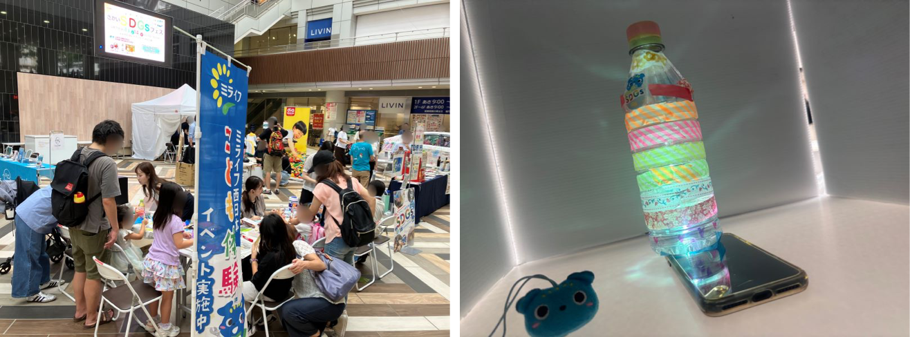 ミライフ西日本株式会社とミライフ株式会社は、2025年9月13日(土)・14日(日)の2日間、東京都練馬区の光が丘IMAで開催された「楽しく遊んで、楽しく学ぼう!さかいSDGsフェス」に共同出展し、ペットボトルランタンづくりと無添加バスボムづくりのワークショップを実施しました。2日間で、地域の皆さま408名の方にご参加いただき、笑顔あふれるイベントとなりました。